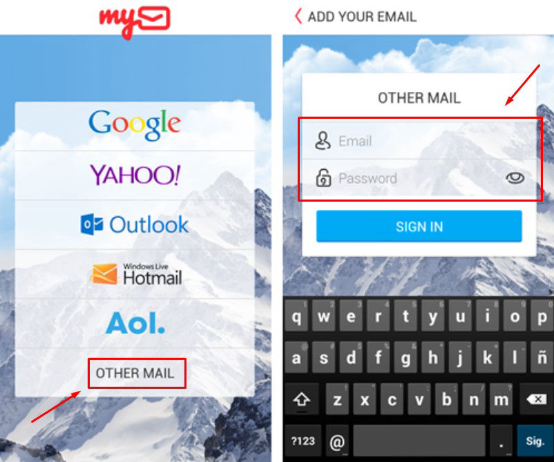 na próxima tela insira seu endereço de email completo e senha (solicite para o SUPORTE).