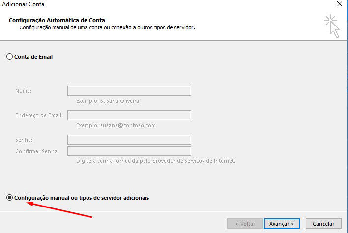 - Clique na opção Definir manualmente as configurações do servidor ou tipos de servidor adicionais