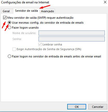 - Em Servidor de saída marque a opção Meu servidor de saída (SMTP) requer autenticação